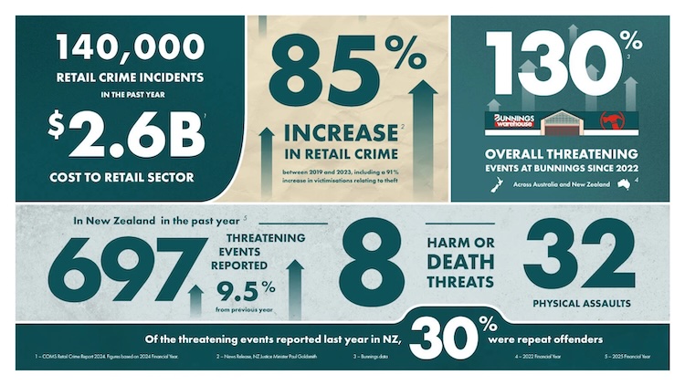 99% of respondents to a Retail NZ survey, for example, indicated they had experienced some form of retail crime or nuisance behaviour in the year to 30 June 2024 – compared to 81% in 2017. Supermarket cooperative Foodstuffs North Island’s metrics claimed that serious incidents in their stores had increased 246% from 2020 to November 2022. The 2022 ANZ Retail Crime Study found that violence and abuse experienced by retail staff was at record levels, with supermarkets and department stores bearing the brunt of the increased abuse.