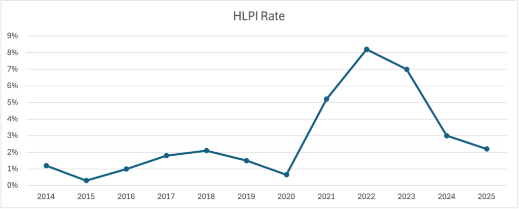 Above figure: New Zealand HLPI rate 2014-2025.